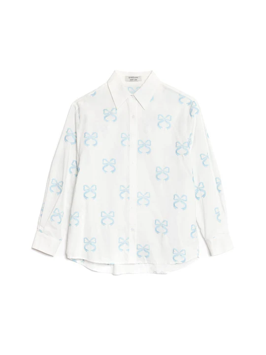 Embrace whimsical elegance with our Cassia Embroidered Shirt, where every stitch tells a tale of summer romance. Crafted from soft woven fabric adorned with delicate bow embroideries, this relaxed-fit shirt fastens gracefully with classic shirt buttons, adding a touch of playful sophistication to your wardrobe.